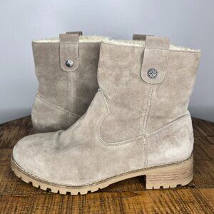 Aspen Suede Shearling-Lined Ankle Boots | Taupe Beige | Size 9