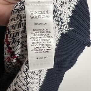 Care (per tag): Turn inside out; machine wash cool on delicate with like colors; use mild detergent; only non-chlorine bleach when needed; tumble dry low; medium iron if needed or dry clean