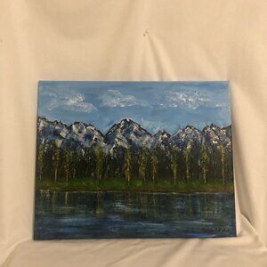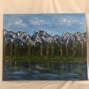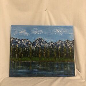 has aspen trees and cedars by lake with mountains in the background that still have some snow