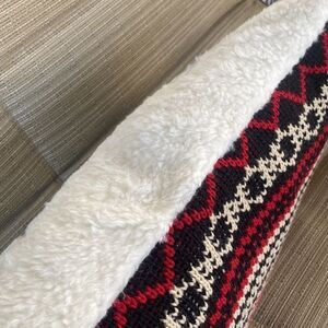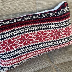 Shearling front graphic lumbar decorative pillow and knit back with feather filling. In NWT condition.