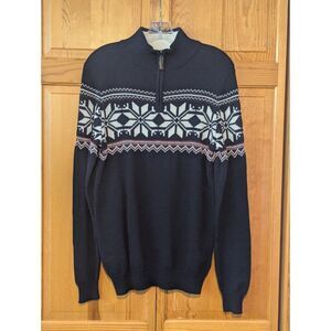 Aspen Men's 1/4 Zip Sweater Nordic Pullover Cotton Navy Blue Long Sleeve