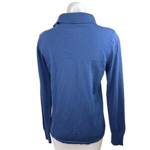 Aspesi Women's 100% Wool Blue Long Sleeve Collared Casual Polo Shirt Top Size M