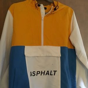 Hooded light weight yellow white and turquoise blue men’s size medium