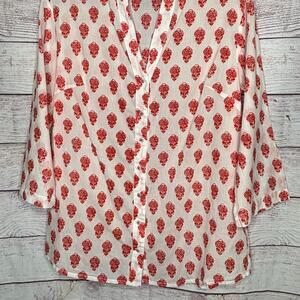 Aspiga Cecilia Floral Pineapple Soft Organic Cotton Button Down Blouse Top Small