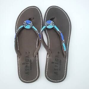 Aspiga Kenyan Handcrafted Glass Beaded Leather Flip Flops Geometric Pattern| 37
