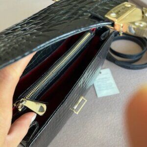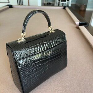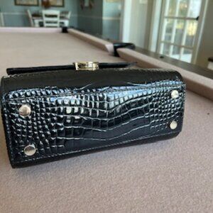 Aspinal of London Mayfair Midnight Black Patent Croc Top Handle Handbag Purse