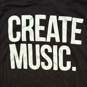 Aspire and Create Unisex Black 'Create Music' Graphic Tee, Size Small, NWOT