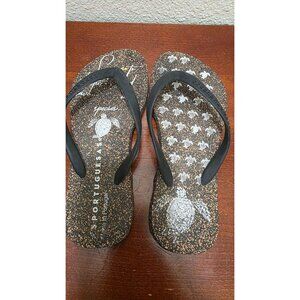 Asportuguesas Women's Cork Thong Flip-Flops Turtle Print & Black Straps Size 35/