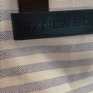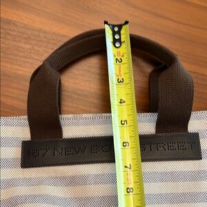 In perfect condition, barely used this bag! The Asprey London small tote bag showcases a chic brown and cream striped pattern, offering a blend of casual elegance and practicality. No wear like new. 167 Bond Street perforated onto strap. Its structured design and durable material make it an ideal choice for daily use, while the minimalist style ensures it complements any ensemble.