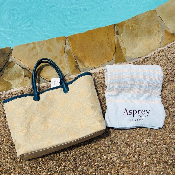 Asprey Cream and Blue Tote Bag