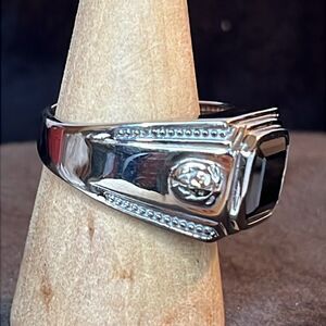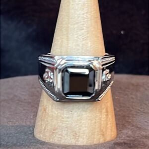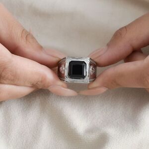Asscher Cut Thai Black Spinel 7.50 ctw Men's Ring in Stainless Steel size 14