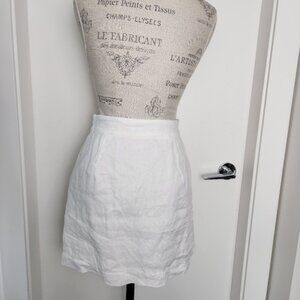 Classic Chic French White Linen High Waist A-Line Mini Skirt with Side Seam Pockets, by ASSEMBLY LABEL.