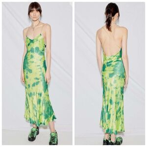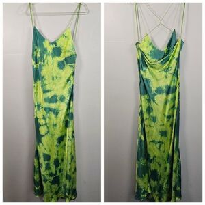 Assembly New York Tie Dye Satin Bias Strap Dress Citrus Size Medium