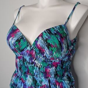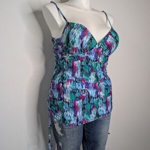 Assets By Spanx Blue Green Purple V Neck Bikini Tankini Swim Top XL. Good condition.