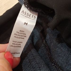Nice comfy jean looking leggings. Navy color, stretch. Used but no imperfection.Disinfected