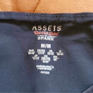 Assets by SPANX Black Structured Shine Leggings Size medium ASSETS Red Hot Label by Spanx shine leggings offer a structured shaping waistband with inner power mesh to flatten your tummy.• Inner power mesh helps flatten tummy• Flattering fabric conceals lumps and bumps• Trendy shiny faux-leather finish