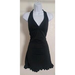 Assets Spanx 1-PC Skirted Swimsuit/Halter Dress XL Black Tummy Control Modest