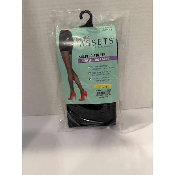 Assets by Sara Blakely Shaping Tights Womens Size 2 Black Wish Bone Textured