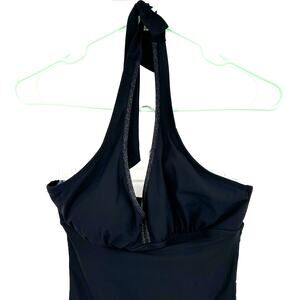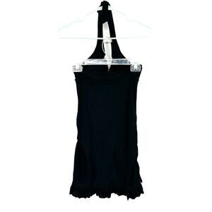 Assets by Spanx Size Medium Swimsuit Black Swim Dress Halter Ruffles One Piece