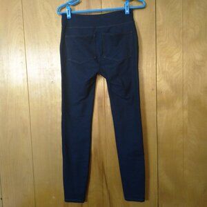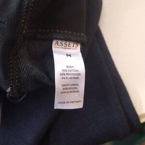 Assets by Spanx women's Medium blue denim like shapewear pants have two front faux pockets and two back pockets.