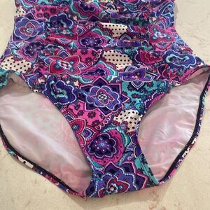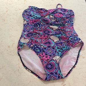 Assets by Spanx multi colored ruched swimsuit SZ Xlarge