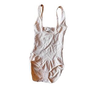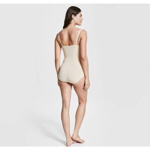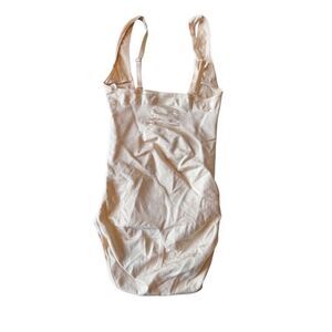 Assets By SpanX Women's natural One Piece Bodysuit in size Small offers a whole lot of shaping with its compression area focusing on the body. Made from a blended fabric of nylon, spandex, and cotton, this shapewear piece is designed for a regular fit with adjustable straps for added comfort. The classic tan color and solid pattern make it a versatile and stylish addition to any woman's wardrobe, providing both designer quality and a flattering silhouette.