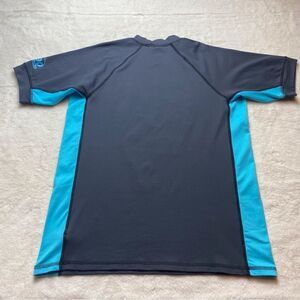 Assh Short Sleeve Sun Protection Rash Guard Swim Shirt Size Medium. Excellent used condition. UV 90. 2 tone blue. Measures chest 37”, length 25”, sleeve 8”.