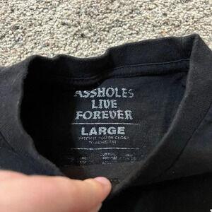 Show off your love for horror movies with this Assholes Live Forever Life Is Scary t-shirt. Featuring a bold graphic print and a comfortable cotton material, this unisex t-shirt is perfect for any season. The round neckline and short sleeves make it a great choice for both casual and formal occasions.