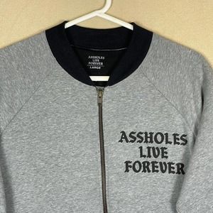 Assholes*s Live Forever Jacket Adult Large Gray Full Zip Pocket Logo Mens