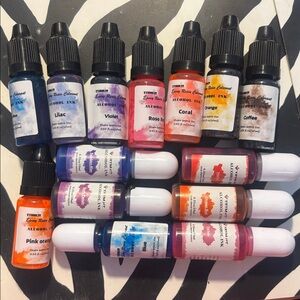 Vibrant alcohol ink set with various colors. Ideal for art projects.