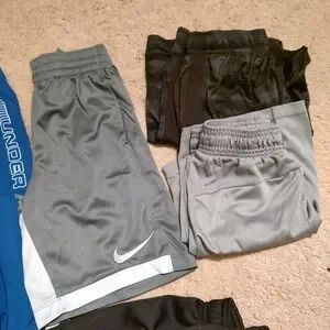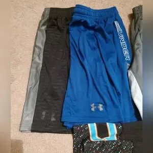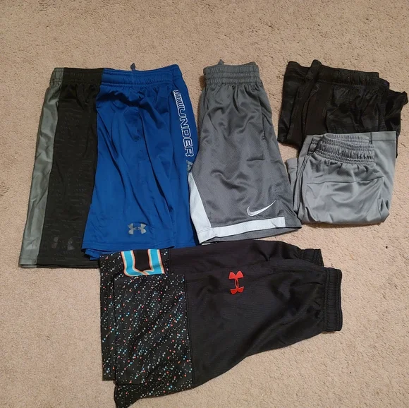 Collection of athletic shorts in various colors. Includes brands like Under Armour and Nike. Perfect for workouts or casual wear.