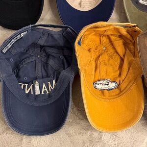A collection of stylish baseball caps in various colors and designs. Perfect for casual wear. Lot of 8 hats.