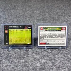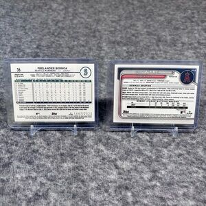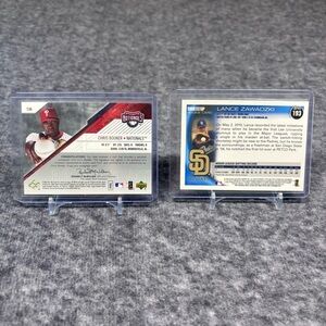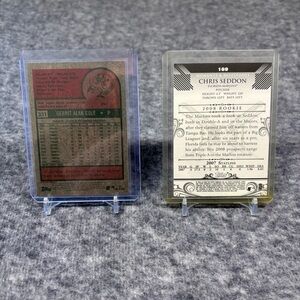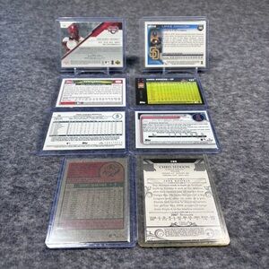 Mix of baseball trading cards displayed in protective sleeves. Includes multiple autographed and all cards are numbered. Great addition for collectors. Variety of team cards in one lot.