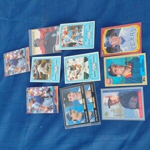 Collection of various baseball trading cards. Features multiple players and teams. Great for collectors.