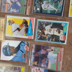 Explore this exciting collection of assorted baseball trading cards. Perfect for enthusiasts and collectors. Each card features vibrant colors and iconic players.