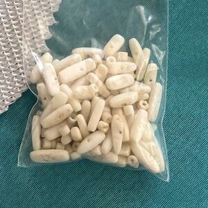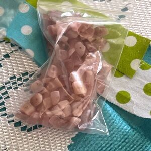 A collection of assorted beads in various colors and shapes. Perfect for crafting and jewelry making. 5 small bags with tiny shells & stones for crafting.