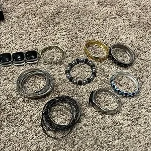 Assorted bracelets in black, silver, blue & gold tones. Perfect for accessorizing any outfit.