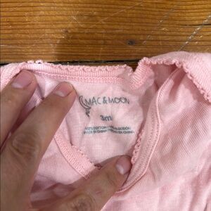 A collection of colorful baby onesies and outfits. Includes pink, blue, and floral designs. Preowned. Various brands. One is a 3-6 months. All in good condition. 9 pieces.