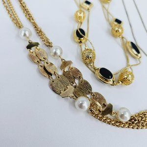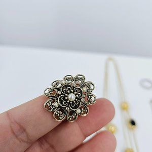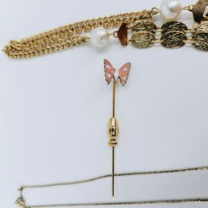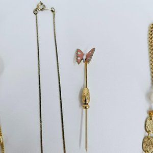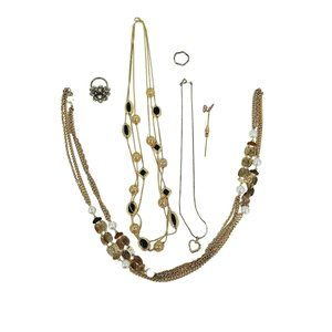 Assorted Bundle of Costume Jewelry Necklaces Rings Stick Pen Gold Metal Art Deco