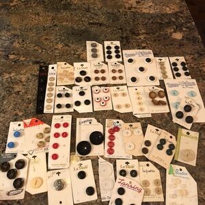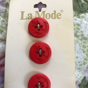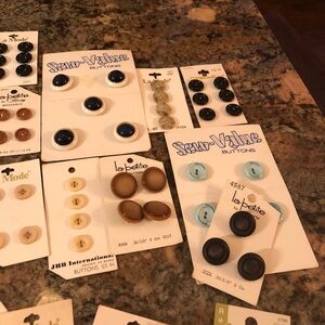 Explore a diverse collection of buttons in various colors, perfect for any sewing project. This assortment includes buttons from brands like La Mode and Lansing, offering quality and style.