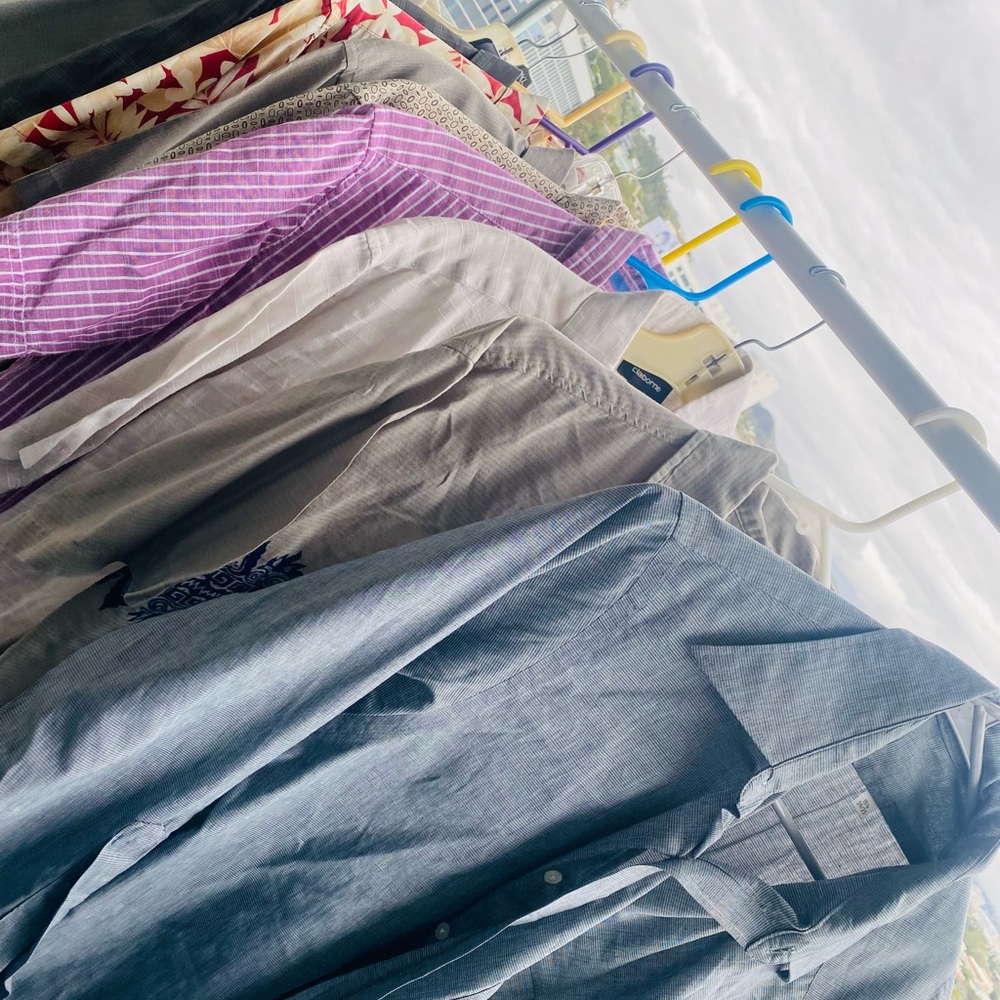 *For the reseller* Collection of button-up shirts in various colors. Includes blue, purple, and cream shades.