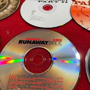 Collection of various CDs with colorful designs. Perfect for music lovers.