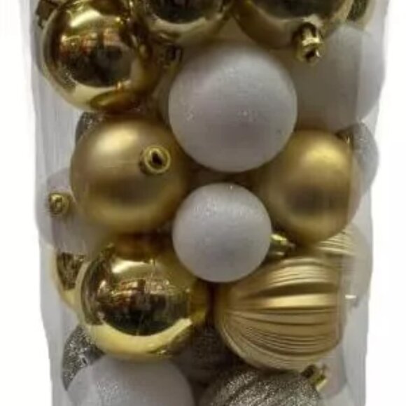 Assorted Christmas Ornaments Gold & White Shatterproof Decorations 50 Count