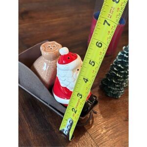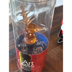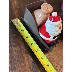 Super cute preowned Mud Pie, Santa and his Bag in metal sleigh salt and pepper shaker. Used one season. New without tags snow laced Christmas tree candles and new in box LSArt glass art reindeer bottle stopper. Great for wine, olive oil, etc. see pics for measurements. Great addition to your holiday decor.