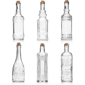 Assorted Clear Glass Bottles with Corks, 6 Pack, 2.5in X 9in, 16oz