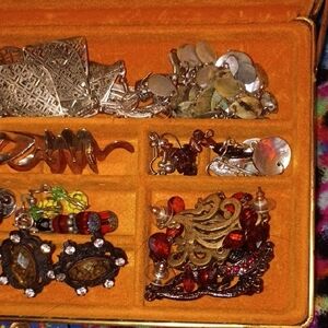 A vibrant collection of assorted earrings for pierced ears. Includes silver, green, orange, and brown tones. Perfect for adding variety to your accessory collection.