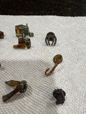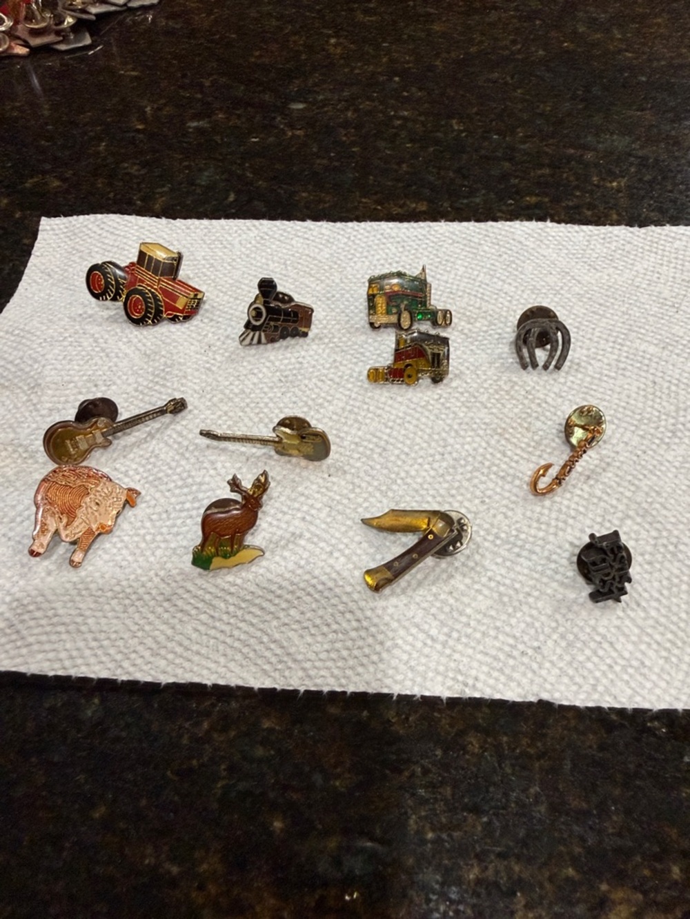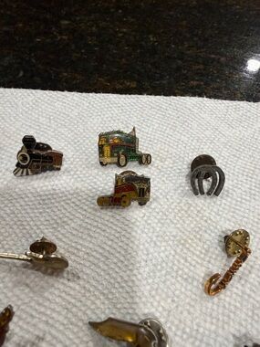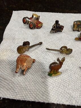 Assorted accessory enamel pin set in multicolor. Bright, playful pins include vehicles, animals, instruments, and novelty shapes. Great for backpacks, jackets, and hats. Easy to attach and perfect for gifting.