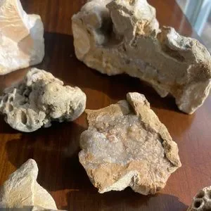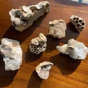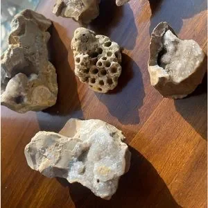 This is a BUNDLE of 7 assorted rocks & fossils. Included: Coral fossils and chert (flint) with druzy crystals. Great for any display case or simply a paperweight! Don’t miss out on these AMAZING looking fossils and crystals! 🪨🪸
