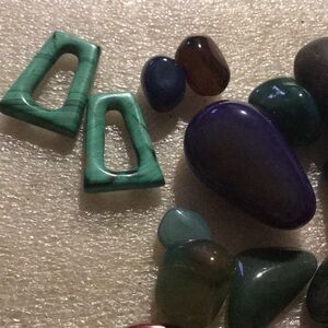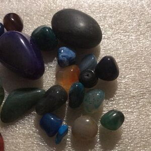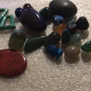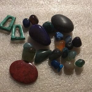 A vibrant collection of assorted gemstones. Includes shades of red, green, blue, and purple. Perfect for crafting or jewelry making.23 gems