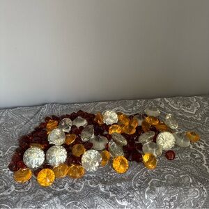 A vibrant collection of assorted gemstones. Includes clear, amber, and brown stones. Perfect for crafts or decoration.